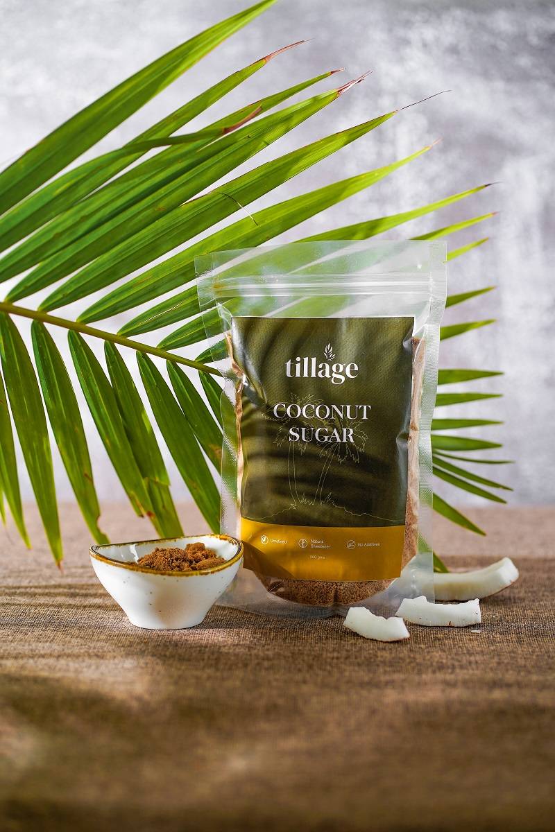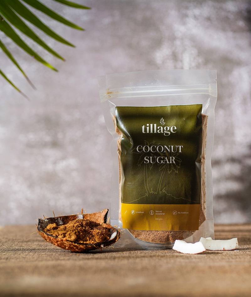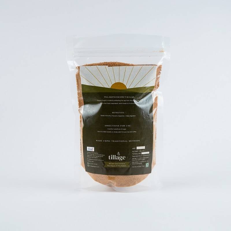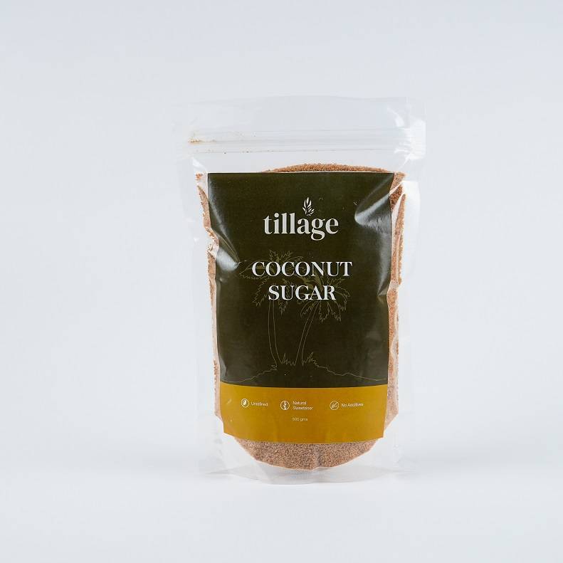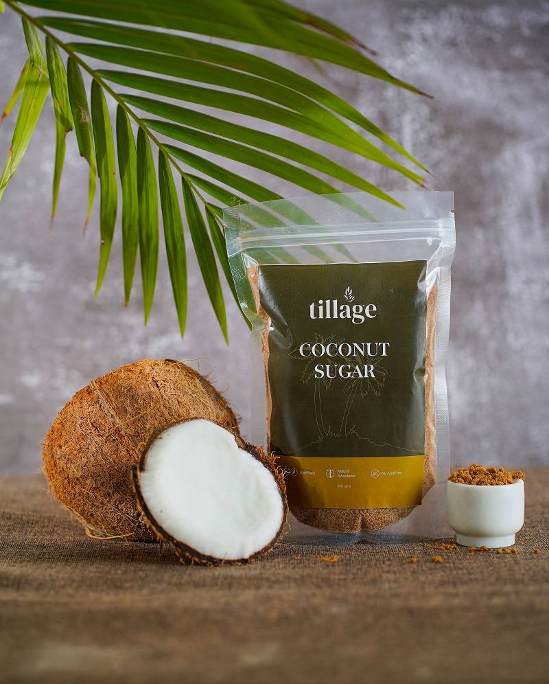 Tillage’s coconut sugar is brought from farms in Chennai. Coconut sugar is made by extracting the sap from the coconut tree. This sap is then heat evaporated to lead to the formation of sugar. This is a very healthy form of sugar having a lower glycemic index. It has a similar nutty flavor to Jaggery.