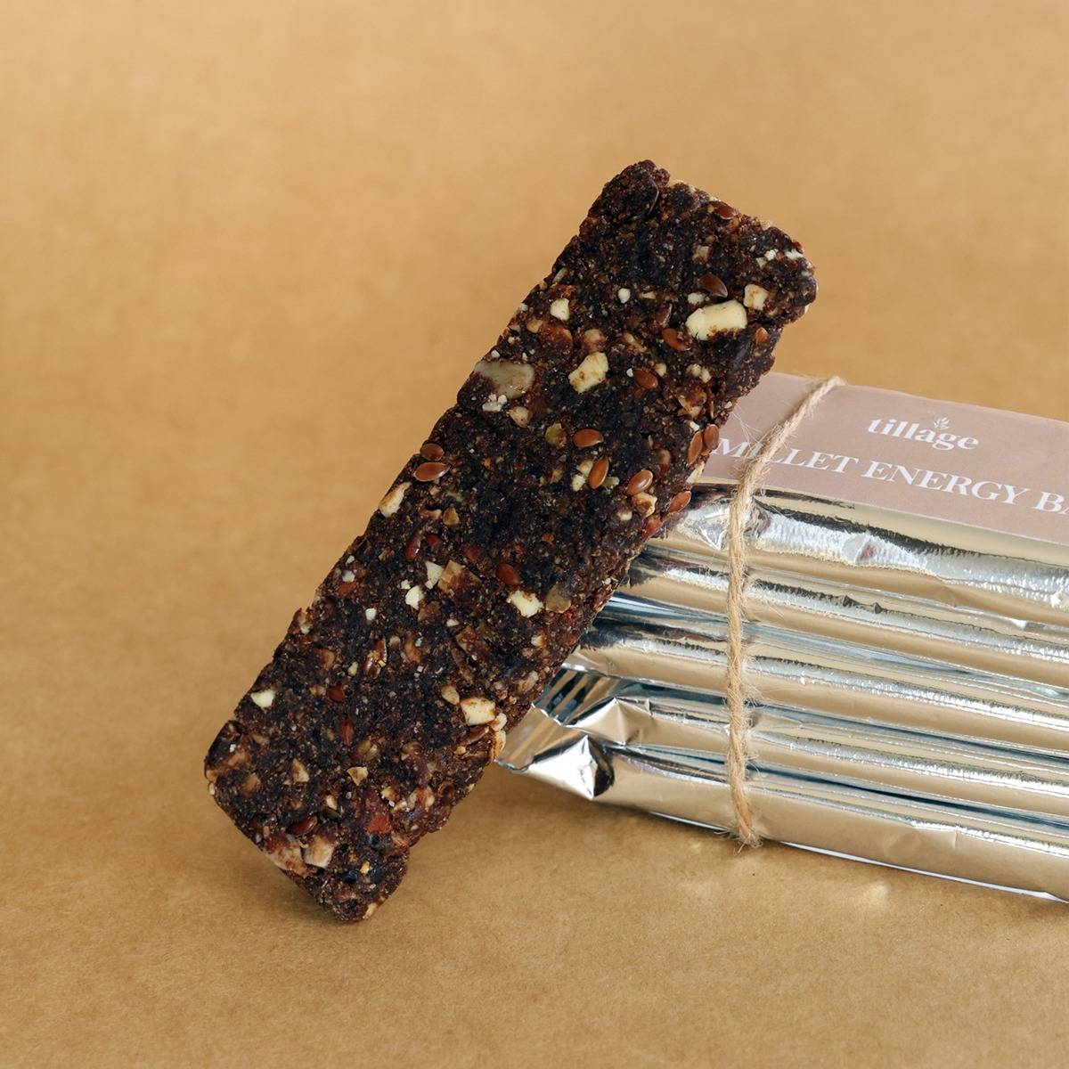 Ragi Flour, Dried Jowar Flakes, Dates, Almonds, Sunflower Seeds, Cacao Powder, Peanuts